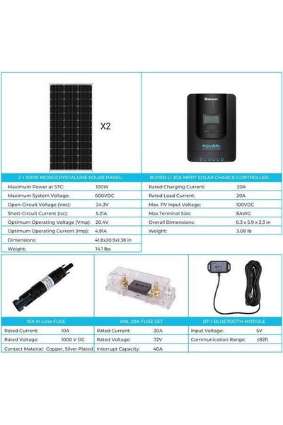 • Suitable for RV and Cabin Use: Sized and configured for common RV and small cabin solar applications
