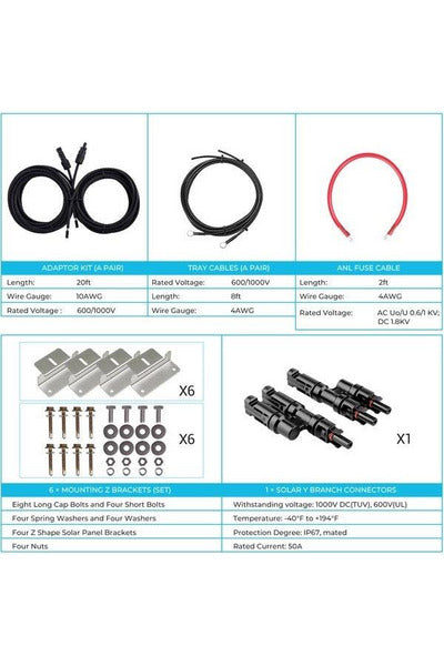 The Renogy 600W 12V/24V Monocrystalline Premium Solar Kit With Rover 60A Charge Controller arrives ready to install with minimal assembly. Connecting it to your system using appropriate wiring is required. Refer to the included installation manual for full setup instructions.
